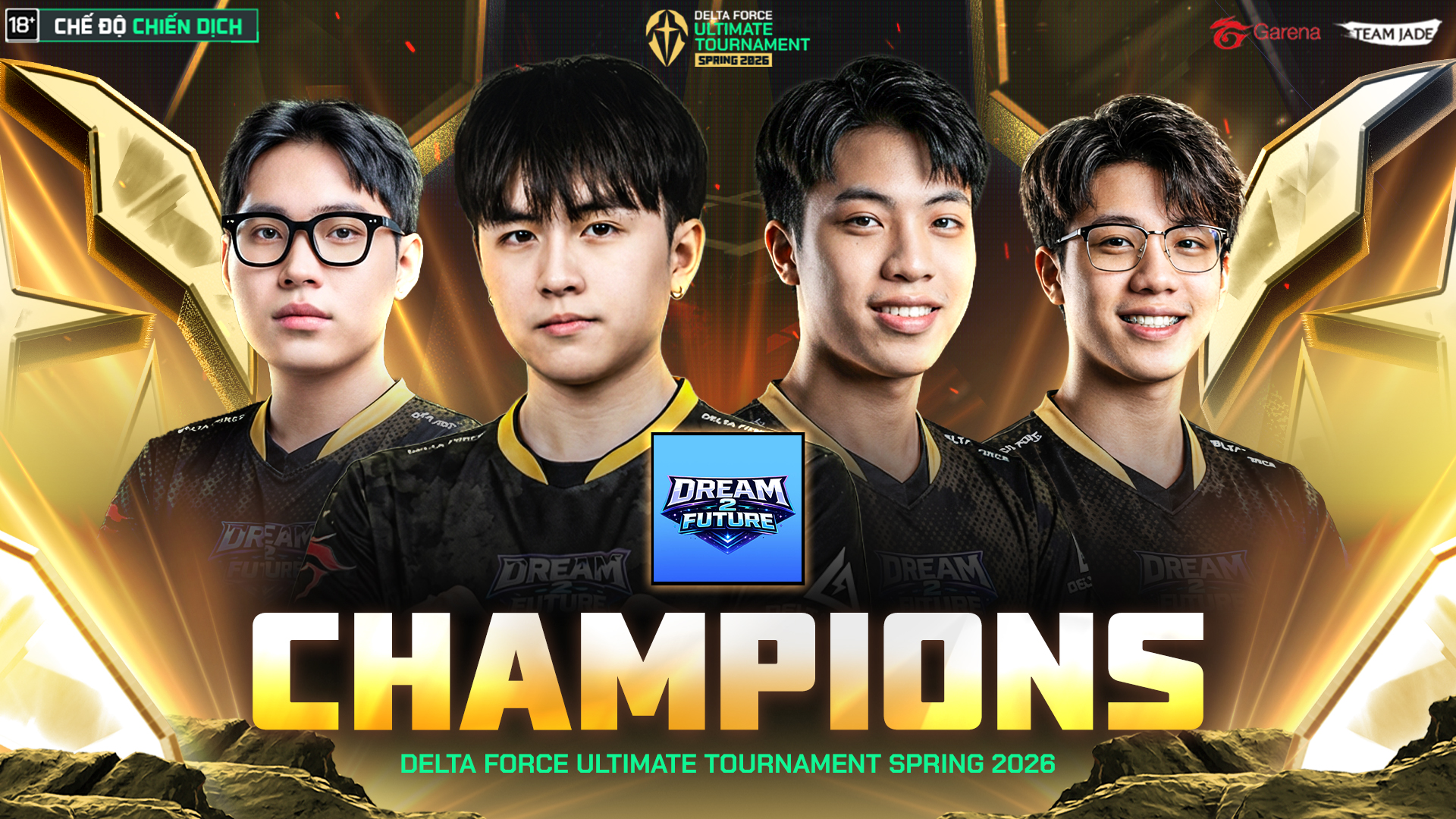 | Hạng 3 TEAM GAME ESPORT | 40.000.000 VNĐ & 5.000 Delta Ticket/người | Nguyễn Thành Thuận Phạm Văn Quân Ngô Gia Hùng Trần Bảo Trọng |